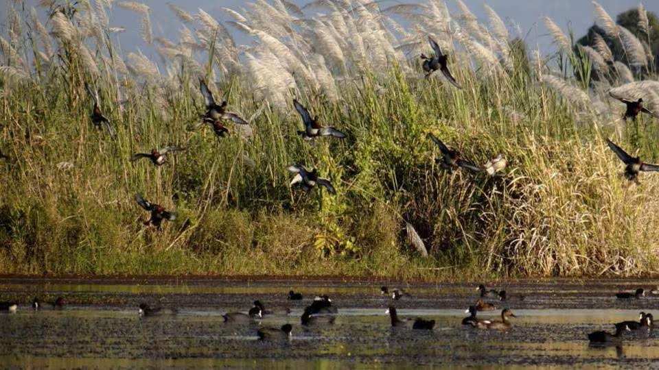 - Multiple species of duck, teal, and grebe in winter (October–March)