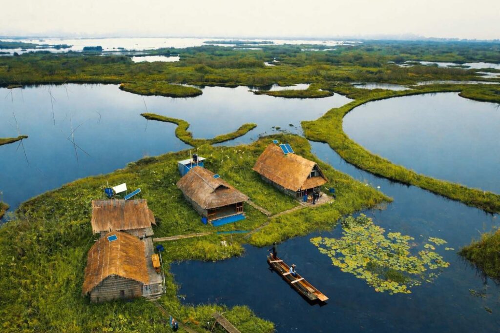 Ecological function: Phumdis are not merely curiosities — they are critical ecological structures that support an entire aquatic ecosystem. They provide nesting habitat for waterbirds, feeding grounds for fish, and shelter for the Sangai deer. They also act as water purification systems, absorbing nutrients and filtering the lake water.