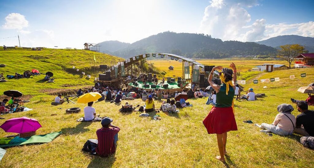 The Ziro Music Festival, held annually over four days in late September, has become one of India’s most celebrated independent music events. Set in the natural amphitheatre of the valley, the festival brings together Indian and international artists across folk, indie, electronica, jazz, and experimental genres — performing against a backdrop of pine forests, paddy fields, and Apatani village life.